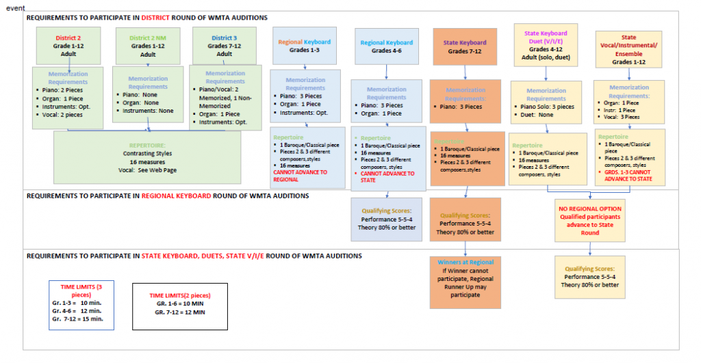 - The first WMTA Events Flow Chart shows all requirements and flow for each category of event, both non-competitive and competitive.